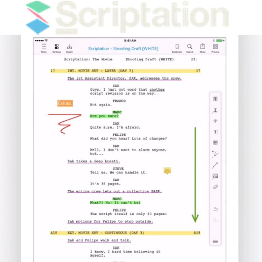 Scriptation es una aplicación que te permite ahorrar tiempo al transferir tus notas por ti. Además tiene una amplia gama de herramientas para escritores, directores, productores, directores de fotografía y actores.